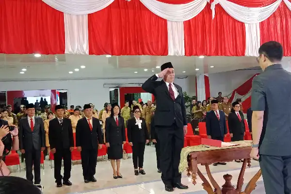 Minut — Bupati Minahasa Utara (Minut), Joune Ganda, resmi melantik dan mengambil sumpah belasan Pejabat Pimpinan Tinggi Pratama di Atrium Kantor Bupati Minut, Selasa (7/10/2025).