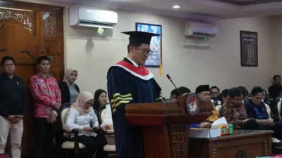 Dalam forum ilmiah itu, Joune Ganda menunjukkan penampilan yang elegan dan penuh percaya diri, berhasil menjawab seluruh pertanyaan dewan penguji dengan argumentasi kuat dan penguasaan materi yang mendalam.